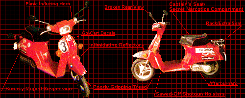 Description: The 3B Attack Cycle is easily characterised by it's descrete size, unique look, and relatively slow speed. The outer body is covered with a sleek red plastic featuring numerous go-cart decals barrowed from a local amusement park. The Attack Cycle is strictly a short range vehicle, used mainly for high priority recon missions and joyrides.